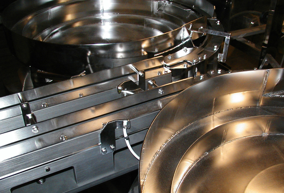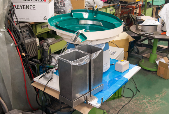 他社様製の水晶片・水晶振動子用パーツフィーダーを大型化して生産能力を向上させる改造を行いました 。