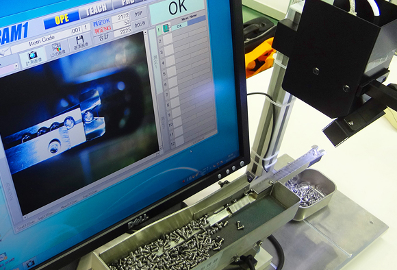 卓上で利用可能な省スペース型画像処理検査装置でM3×10mmネジのサイズを外観検査いたします