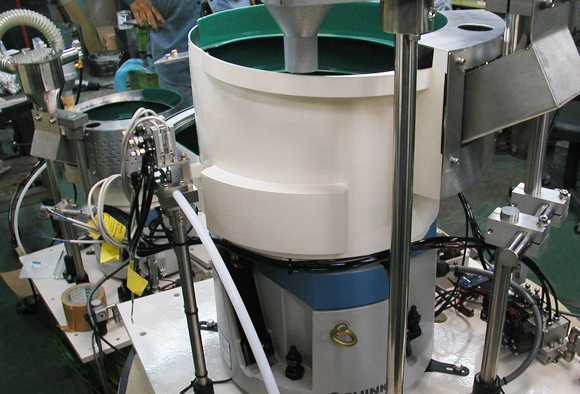 整列の妨げになるバネ同士の絡みを防ぐ為にパーツフィーダーにバネばらし機を設置いたしました。