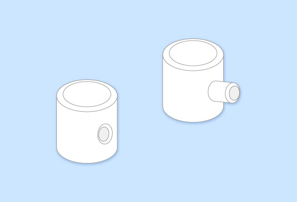 噴射口の異なる2つのワークに対応する兼用型で1分間に150個という高タクト実現の為エアーを多用します。
