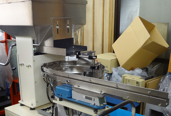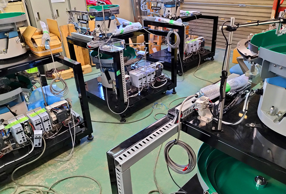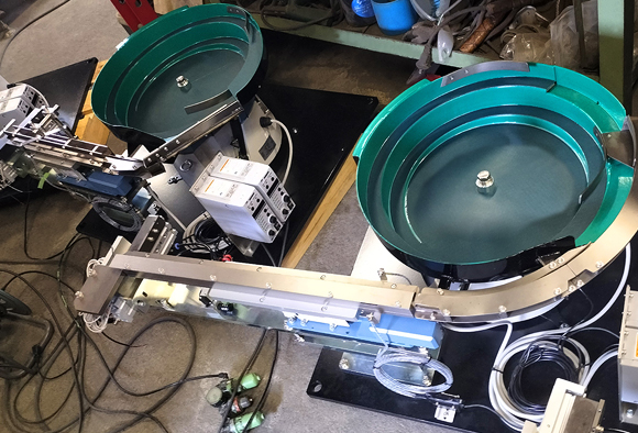 六角と丸型の溶接ナットを整列・排出するパーツフィーダーでそれぞれ二台ずつ、合計四台製作しました。