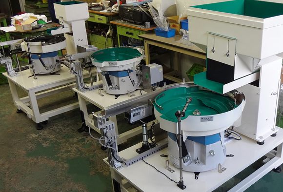 上下2段で一組のパーツフィーダーを4セット制作いたしました