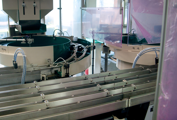 コネクタキャップ、ブレーキキャップ、パルスキャップ用に計三台のパーツフィーダーを制作いたしました。