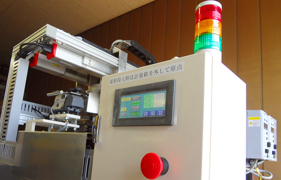 ふりかけの重量の上限と下限をタッチパネルで設定して「重量測定」「重量検査」「排出」の作業工程をワンストップで行います。( 重量測定はスピードアップの為二列で検査します)