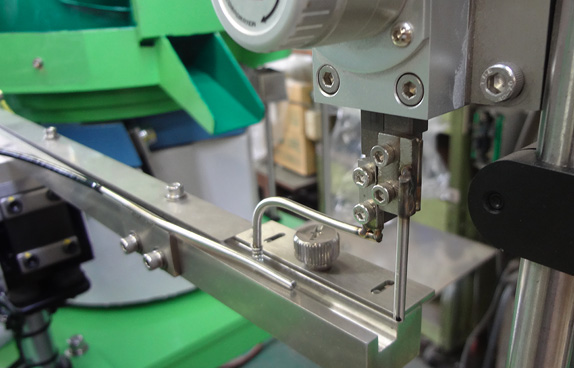 クリップ(2種)を整列してボールペンの組み立て機に供給する多品種兼用型パーツフィーダーで供給能力(タクト)アップの為整列機を二台使用します。兼用対応なのでワークの選別はセンサーでなくアタッチメントとエアーで行い、最低限の調整で速やかに品種替え出来るよう設計いたしました。