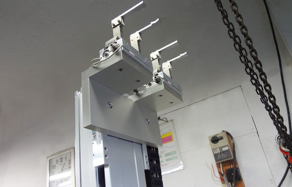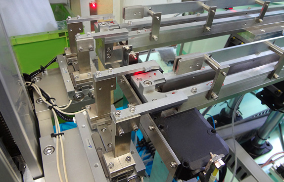 二台のパーツフィーダーを連動させてそれぞれ別々のサイズのワークを同時進行で整列後、誤混入検査を行い約125cmリフトアップして次工程の機械へ排出させるので極めてシビアな構想と設計が必要になりました。