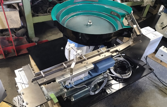 丸型ウェルドナットを整列して切り出し次工程の機械に供給する為のパーツフィーダーです。