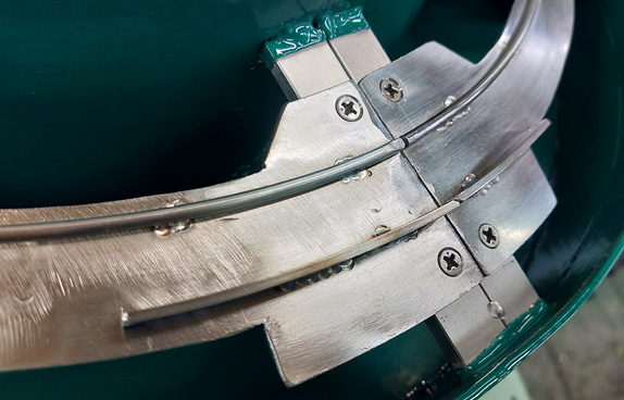 製品実績 「ウェーブワッシャー整列機」 会社案内 パーツフィーダーとは 製品実績 納品までの流れ よくあるご質問 お問合せ MENU ホーム 製品実績 ウェーブワッシャー整列機 自動車部品向けパーツフィーダー ウェーブワッシャー整列機 ウェーブワッシャーは歪んだ形状が原因で非常に流しにくいワークの1つですのでパーツフィーダーにあらゆる対策が必要になります。(パーツフィーダーのお見積・ご質問等はお問合せフォームもしくはお電話 047-406-6121をご利用ください。) ワーク (ウェーブワッシャー) 全体的に歪んでいるのでワーク同士が重なったり絡まったりしてしまい整列・排出が非常に難しいです。 ボウル 整列・排出するためのワークを大量に投入するボウルの底面はウレタンでコーティング処理しています。 アタッチメント部分 振動によりボウルから流れてきたワークを様々な仕掛け(アタッチメント部分)で正しい方向・姿勢に整えます。 ワーク ウェーブワッシャー 供給能力 30個 / 分 (一列あたり) ボウル表面処理 ウレタンコーティング 切り出し部 あり (回転機構) 画像処理 無し 電源 単相 AC200V 50Hz / 60Hz兼用 製造日 2021年09月28日 自動車部品向けパーツフィーダー ウェーブワッシャー整列機