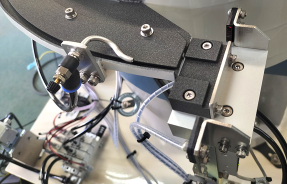 製品実績 「四角形ゴムリング整列機」 会社案内 パーツフィーダーとは 製品実績 納品までの流れ よくあるご質問 お問合せ MENU ホーム 製品実績 四角形ゴムリング整列機 ゴム&Oリング 四角形ゴムリング整列機 細いゴム製のリングを自動で整列・排出するパーツフィーダーで直進フィーダーを使わない構成で設計いたしました。粘着性が高いゴム製ワークが底面に吸着しないようボウルや切り出し部にシルバーストーン処理を施して滑りやすくなるように対策しています。 四角形ゴムリング 細いゴム製のリングで形状に反りがあったり絡まり合う恐れがあり非常に流しにくいワークです。 通過センサー 細く変形しやすいゴムリングが整列過程で詰まってしまわないようにセンサーで監視します。 切り出し部(せり上がり式) 整列して先端部に到着したワークを次工程の機械が掴みやすいようにせり上げて切り出します。 ワーク 四角形ゴムリング 供給能力 2個 / 分 (一列あたり) ボウル表面処理 シルバーストーン 切り出し部 せり上がり式 電源 単相 AC200V 50Hz / 60Hz兼用 製品の種類 ゴム&Oリング 製造日 2023年06月05日 ゴム&Oリング 四角形ゴムリング整列機