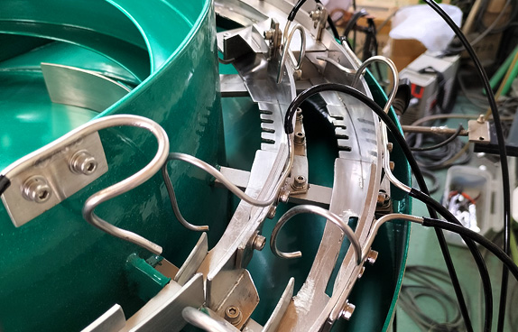 製品実績 「スプレー缶ノズルヘッド整列機」 会社案内 パーツフィーダーとは 製品実績 納品までの流れ よくあるご質問 お問合せ MENU ホーム 製品実績 スプレー缶ノズルヘッド整列機 樹脂部品 スプレー缶ノズルヘッド整列機 噴射口の形状が異なる二種類のノズルヘッドに対応する多品種兼用型パーツフィーダーで1分間に150個排出という非常に高い供給能力を実現する為にエアーによるワークの姿勢制御を多用しています。 スプレー缶ノズルヘッド 噴射口が異なる二種類のワークはどちらも非常に整列させづらい形状で様々な対策が必要です。 ボウル 整列する為のワークを大量に投入する場所でボウルの底面はウレタンでコーティング処理しています。 エアー&アタッチメント 様々な仕掛けでワークの姿勢を整えますが高タクトが必要なのでエアーによる姿勢制御を多用しました。 ワーク スプレー缶ノズルヘッド(二種類) 供給能力 150個 / 分 (一列あたり) ボウル表面処理 ウレタンコーティング 電源 単相 AC100V 50Hz / 60Hz兼用 製品の種類 樹脂部品 製造日 2022年03月16日 樹脂部品 スプレー缶ノズルヘッド整列機